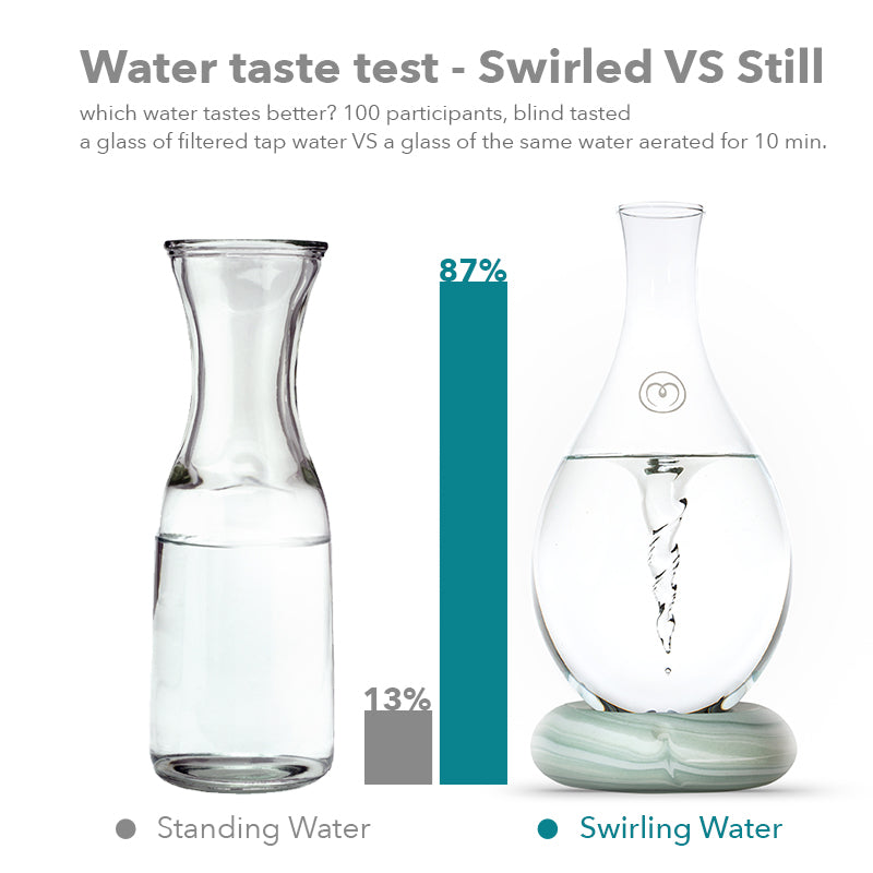 The real magic of aeration truly comes into focus when you taste the silky texture of MAYU structured water. Gone the odors and chlorine. Gone the harsh flavors. MAYU water is softer, smoother rebalanced water that your body instantly responds to. How good is it? 87% of taste testers preferred MAYU vortexed water to regular standing water - and kids especially reacted to the difference. More please!